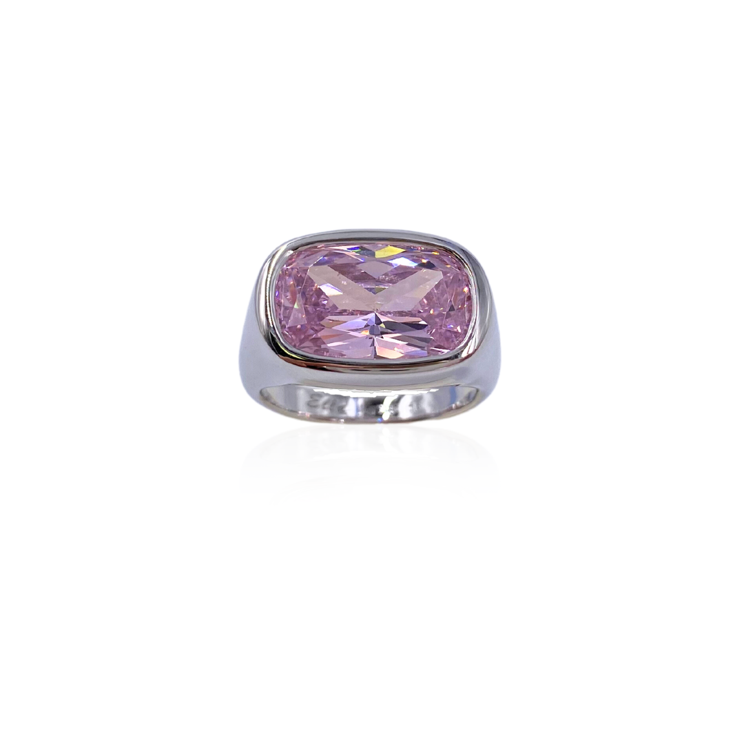Introducing the BARBIE ring from the Cocktail collection, crafted from double 18kt gold-plated 925 sterling silver. This eye-catching ring features a vibrant fuchsia handset zirconia center stone, exuding playful elegance and bold style. A perfect accessory for adding a pop of color and glamour to any look.