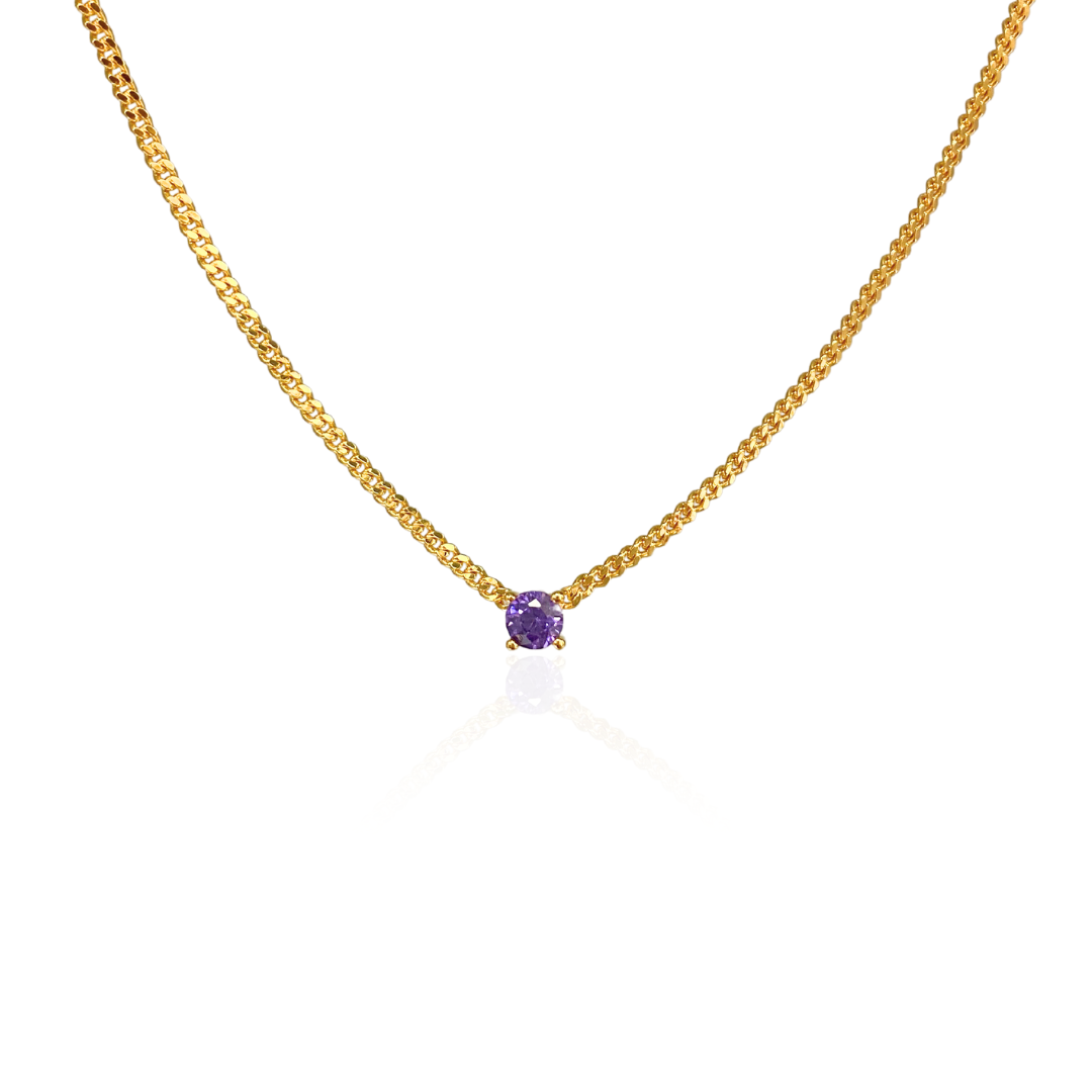 The stone in the necklace is a zirconium stone that mimics amethyst.