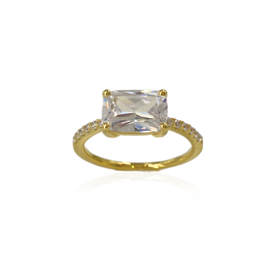 Introducing our Glamorous Ring, a symbol of understated elegance and timeless beauty. Crafted with exquisite simplicity, this stunning ring features a handset white zirconia stone at its center, surrounded by delicate small zirconia stones adorning its band, all set in luxurious 18kt gold plated sterling silver.