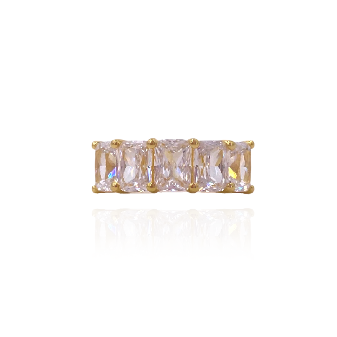 The Rich Grand ring features stunning clear zirconia stones, each handset to perfection, creating a striking and elegant design.