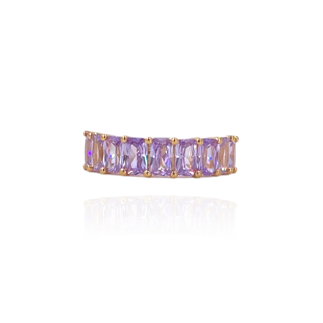 Introducing the Rich ring from Ella Jewellery's vibrant Cocktail Collection—a statement piece that exudes luxury and sophistication. This 925 silver ring is double plated with 18kt gold, offering a radiant and opulent finish. The ring is covered with beautiful lavender purple coloured zirconium stones.